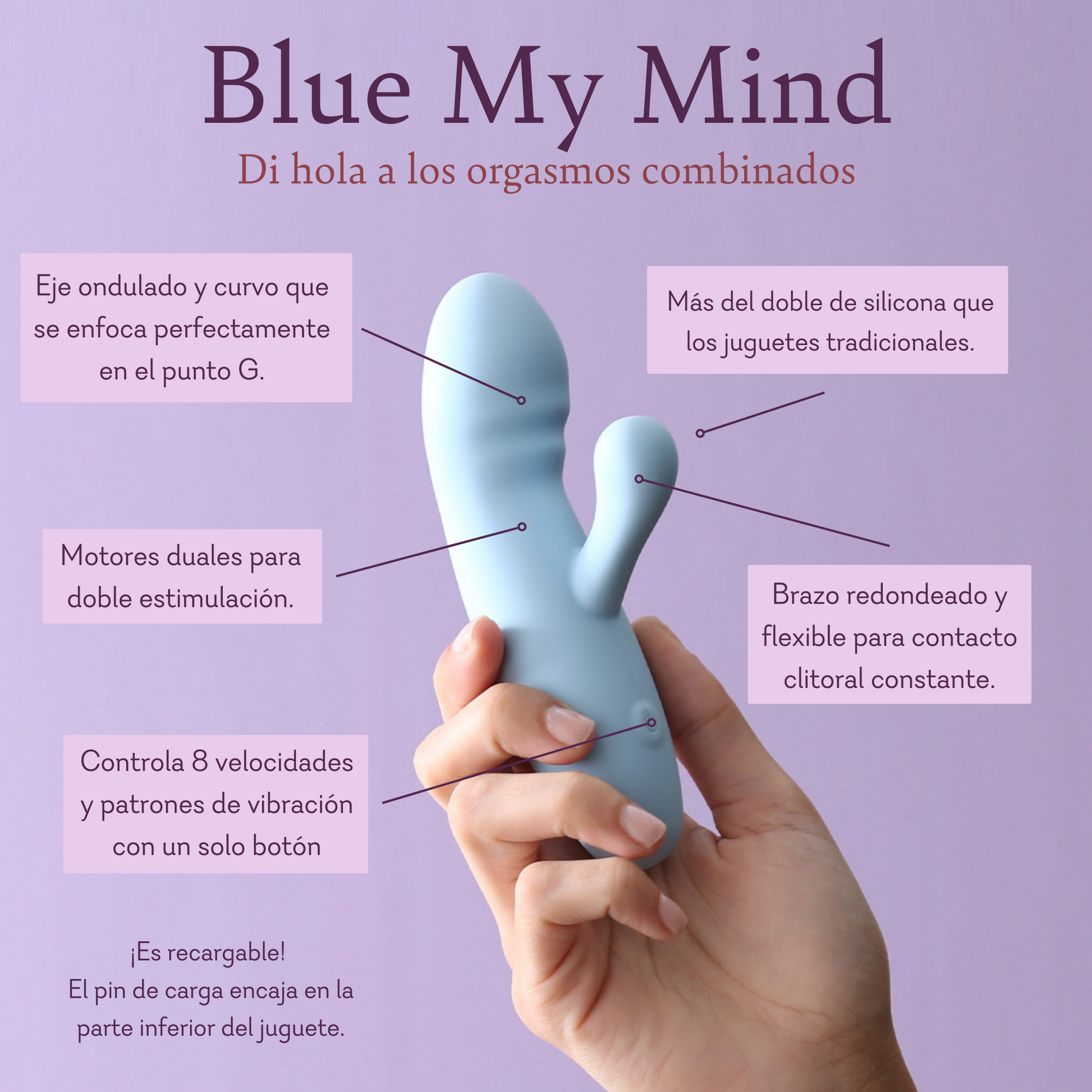 Dale un nuevo significado a la sensación de tristeza con Blue My Mind. Este vibrador de doble acción está hecho de silicona súper suave e irresistible que tendrás que tocar para creer. Su forma curva con dos crestas masajea el punto G, mientras que el estimulador de clítoris te provoca. Con 2 motores y 8 velocidades y funciones de vibración, este juguete te va a encantar.
