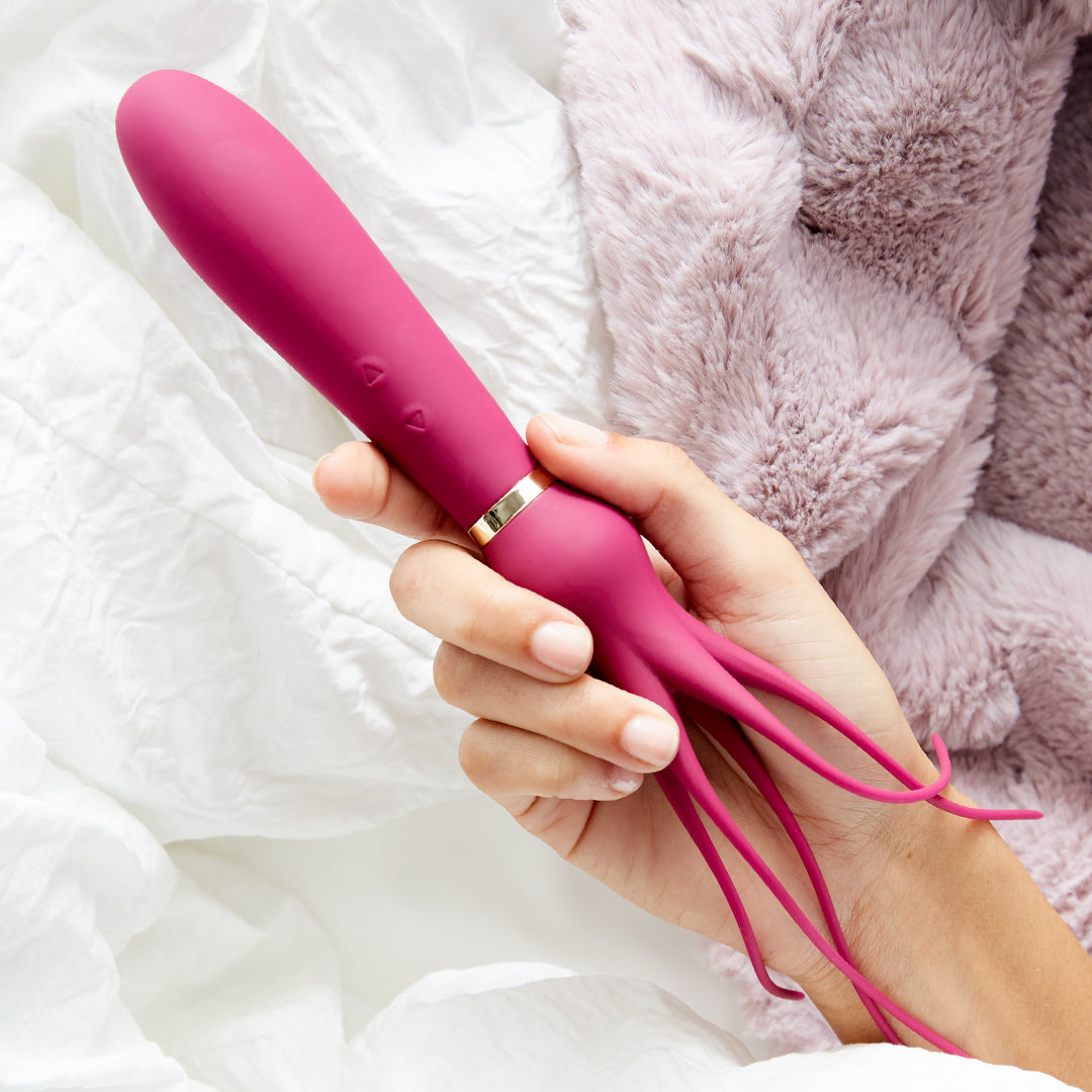 ● El eje firme y vibrante funciona también como mango para un toque provocador o incluso picaduras sexys tipo látigo a través de las borlas.